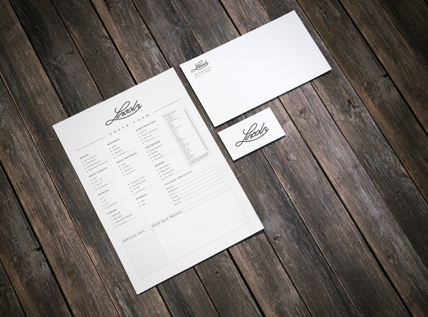 Lincoln Guitars are bespoke instruments made by hand in Austin, TX by Derek Asuan-O'Brien. Rooted in mid-century modernity and art deco silhouettes, Lincoln Guitars' brand is as understated and timeless as the bespoke quality of the instruments themselves. As seen on KEXP and played by Wolf Parade.