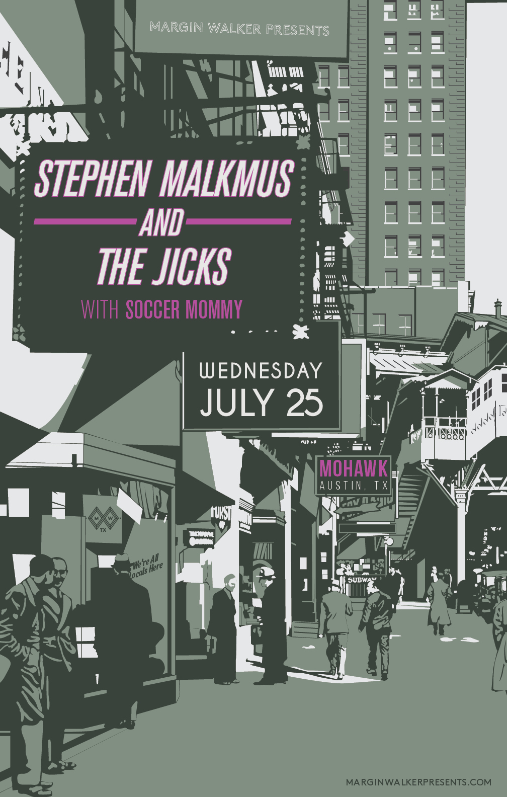 Margin Walker was Texas' largest independent booking company, putting on over 1000 shows and events every year. Promotional material needed to match the brands and images across a spectrum of performers to communicate with long time fans and attract new ones. Posters were always important for grass roots marketing and a way to give music lovers an affordable souvenir, while supplies on the wall lasted.