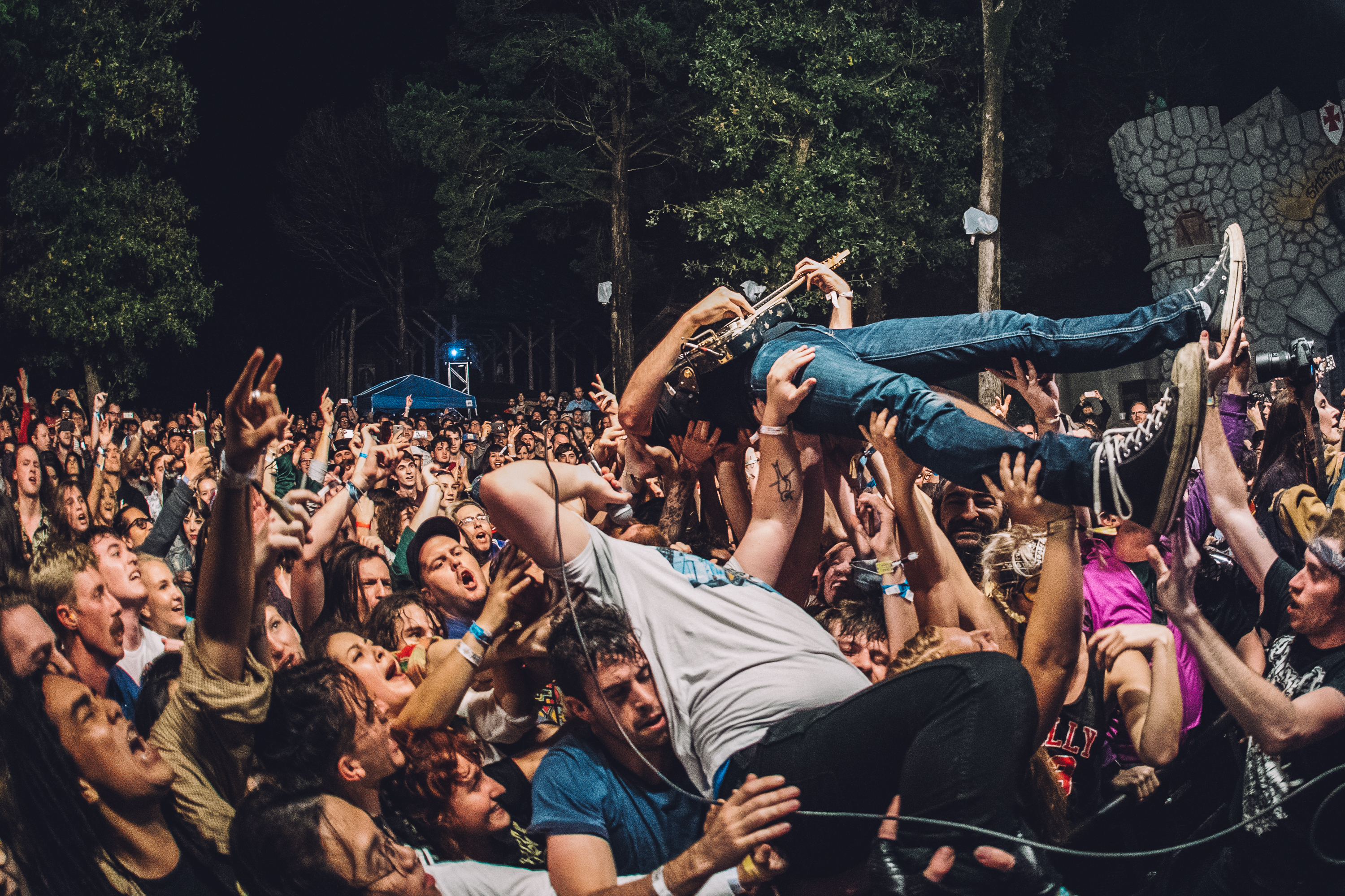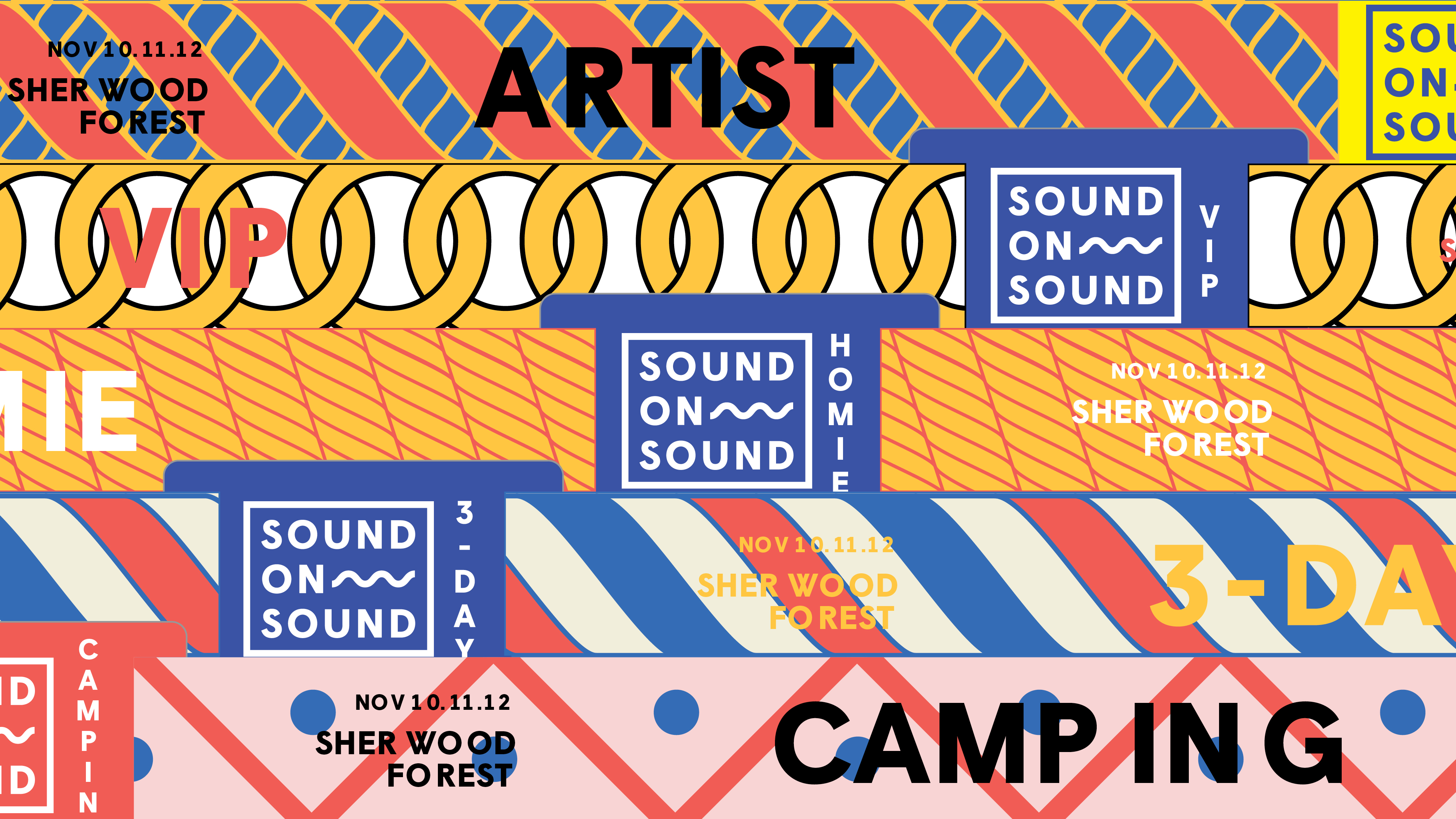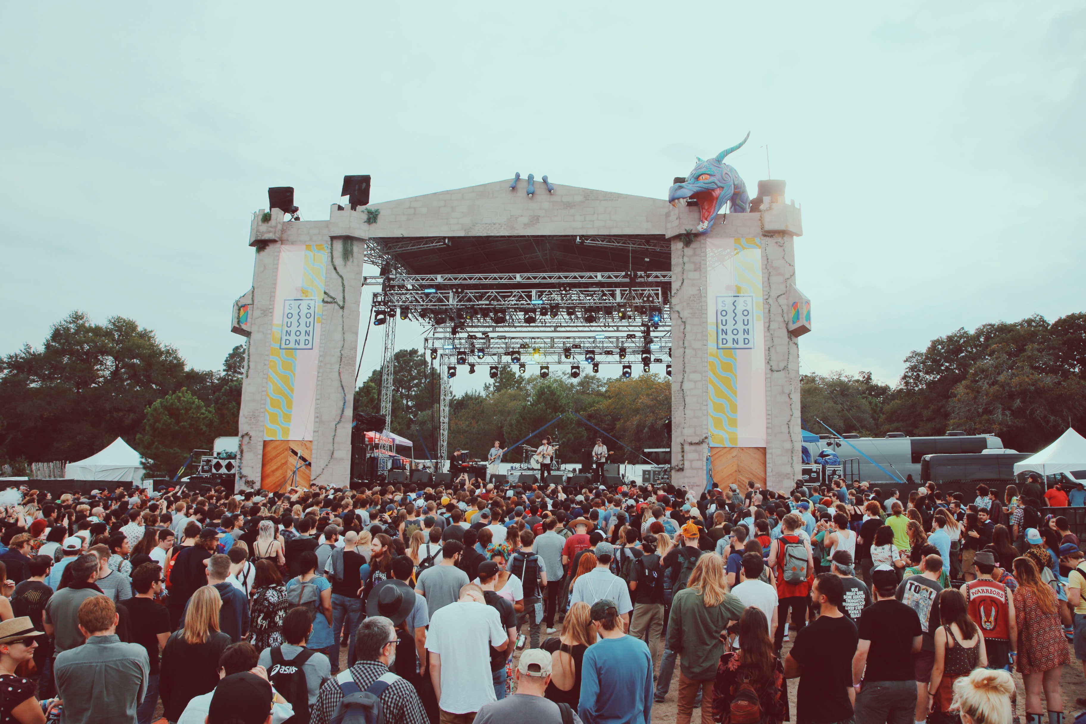 Sound On Sound (SOS) rose from the ashes of Fun, Fun, Fun Fest as a response to the multitude of other music festivals across the world. An out-of-season renaissance fair for a venue set the background for 80s basement culture come to life: blacklight posters, Frank Frazetta, Dungeons & Dragons, and lots of loud music. An identity that harkened to such rich source material set the tone for promotional material, merchandise, and attendee ephemera that made everyone feel like a level 14 paladin.