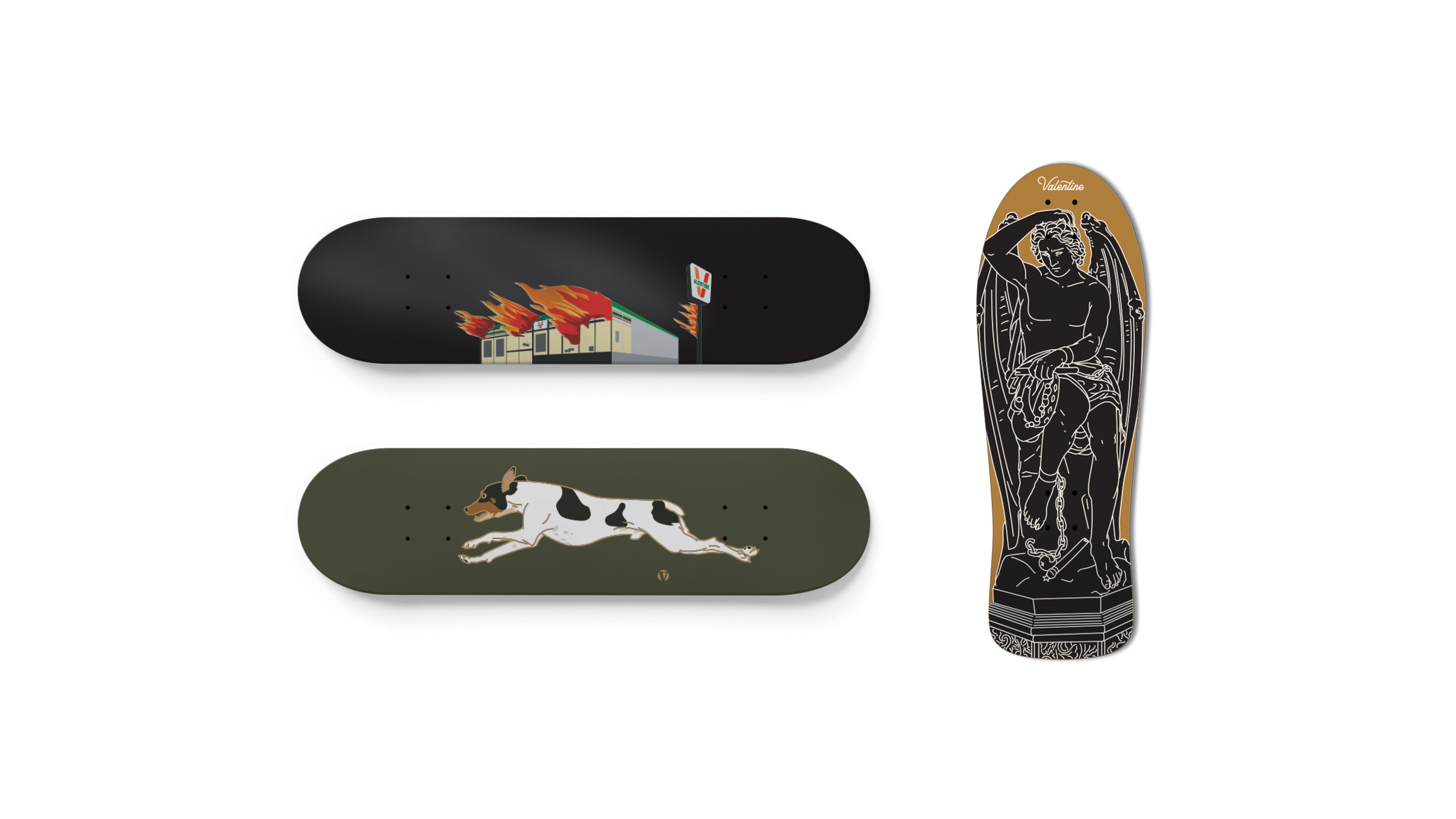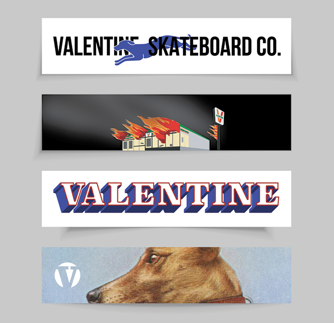 Valentine Skateboards combines art, design, and the metropolitan landscape. The identity reflects the signage and creatures of the city's surroundings with a refined irreverence that nods to skateboarding's cultural history.
